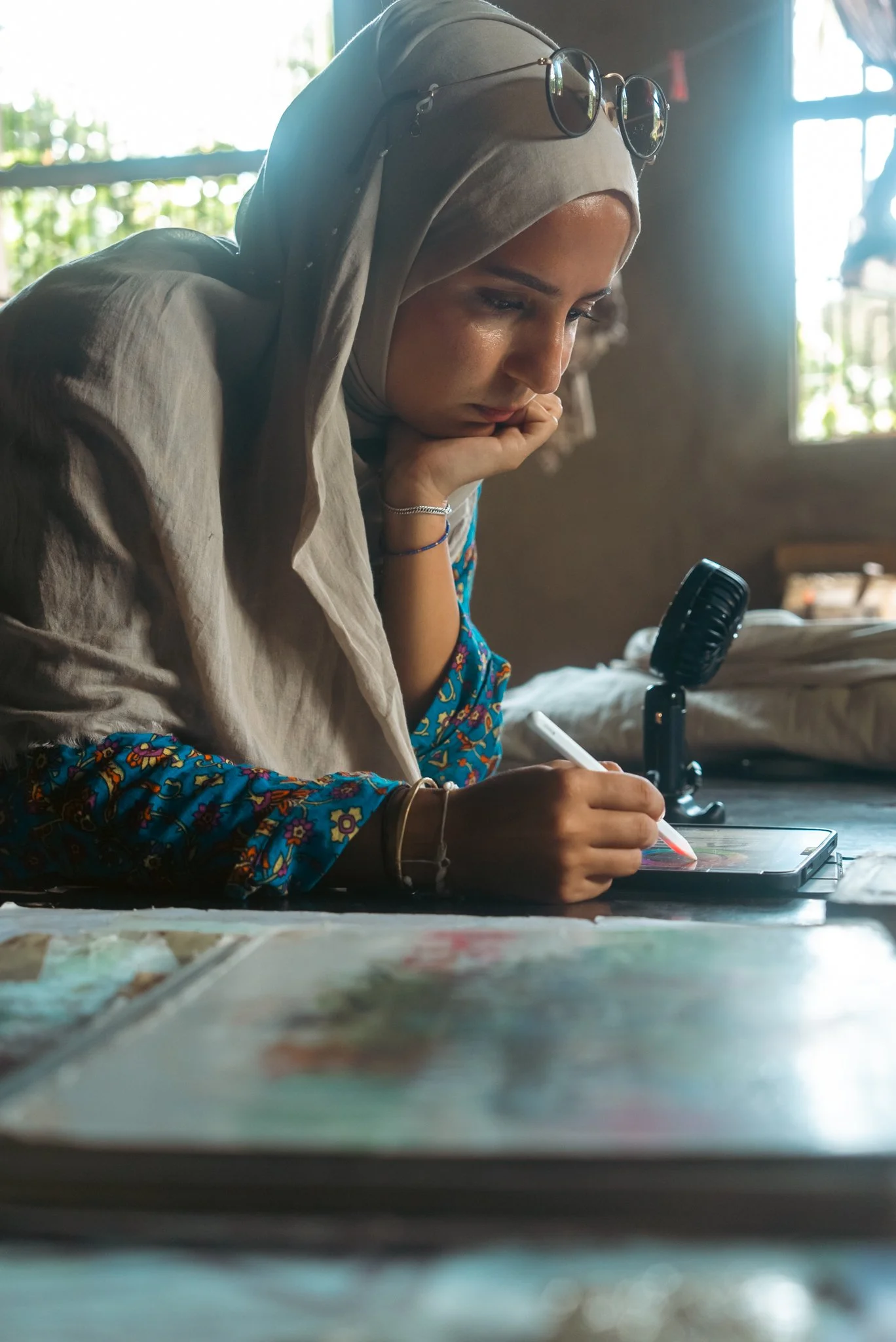 Und dann ist da meine Leidenschaft für Seide. Mit zwölf begann ich, Kopftuch zu tragen und suchte nach Stoffen, die angenehm, leicht und atmungsaktiv sind. Im Sommer war Seide unschlagbar. Neue Seide konnte ich mir als Schülerin nicht leisten, also kaufte ich Vintage-Seide: erst ein Tuch, dann eine Bluse, dann immer mehr. Heute begleitet sie fast jedes meiner Designs.