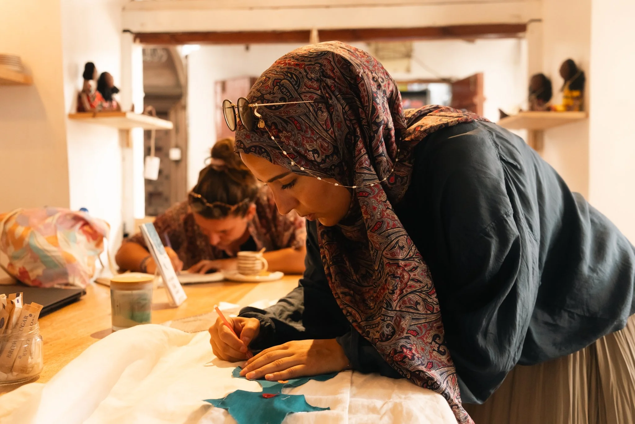 Dann kam eine Einladung, die alles veränderte: Vier Monate arbeitete ich in einem Atelier auf Sansibar mit 30 Frauen, die mit wenig lebten, aber voller Würde, Gemeinschaft und Stärke. Wir nähten zusammen, tauschten Wissen aus und wuchsen miteinander. Zeiten ohne Strom oder Wasser waren dort normal und trotzdem war so viel Wärme da. Diese Erfahrung gab mir ein neues Bewusstsein für Nachhaltigkeit und zeigte, wie viel man mit wenig erschaffen kann.